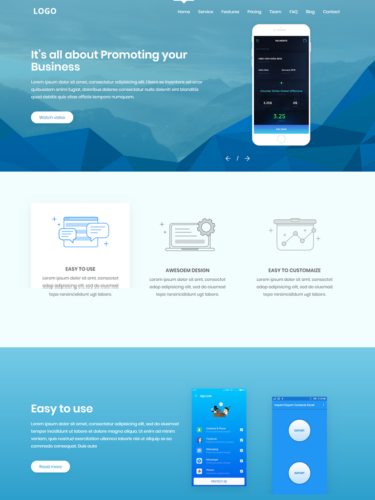 Việt Blogger Mobile App là mẫu template theo phong cách Landing Page sử dụng làm trang giới thiệu dịch vụ, mobile app, software... Mẫu giao diện có thiết kế đẹp, tốc độ tải trang nhanh, reponsive với mọi kích thước màn hình, thân thiện với Mobile, SEO tốt, dữ liệu có cấu trúc đầy đủ, sử dụng Google Form làm Contact Form...