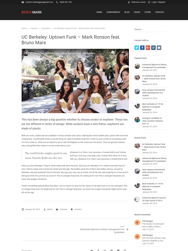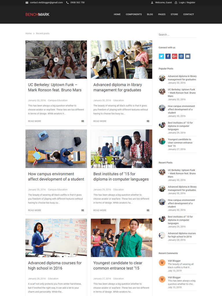 Theme Blogspot Landing Page giáo dục giới thiệu các khóa học tiếng Anh online, template này được convert từ theme gốc wordpress bên nước ngoài có tên Benchmark. Template được thiết kế tỉ mỉ chủ đạo với giao diện kết hợp giữa Material Design và Bootstrap 4 mới nhất đảm bảo các yếu tố cần thiết của một template đẹp chuẩn. Tốc độ tải trang tương đối nhanh, reponsive với mọi kích thước màn hình, thân thiện với mobile, dữ liệu có cấu trúc đầy đủ...