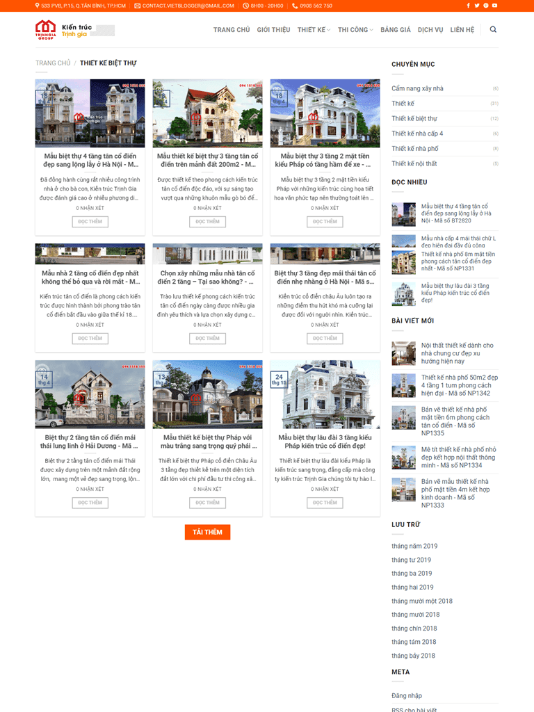 Giao diện Blogspot kiến trúc nội thất đẹp chuẩn seo